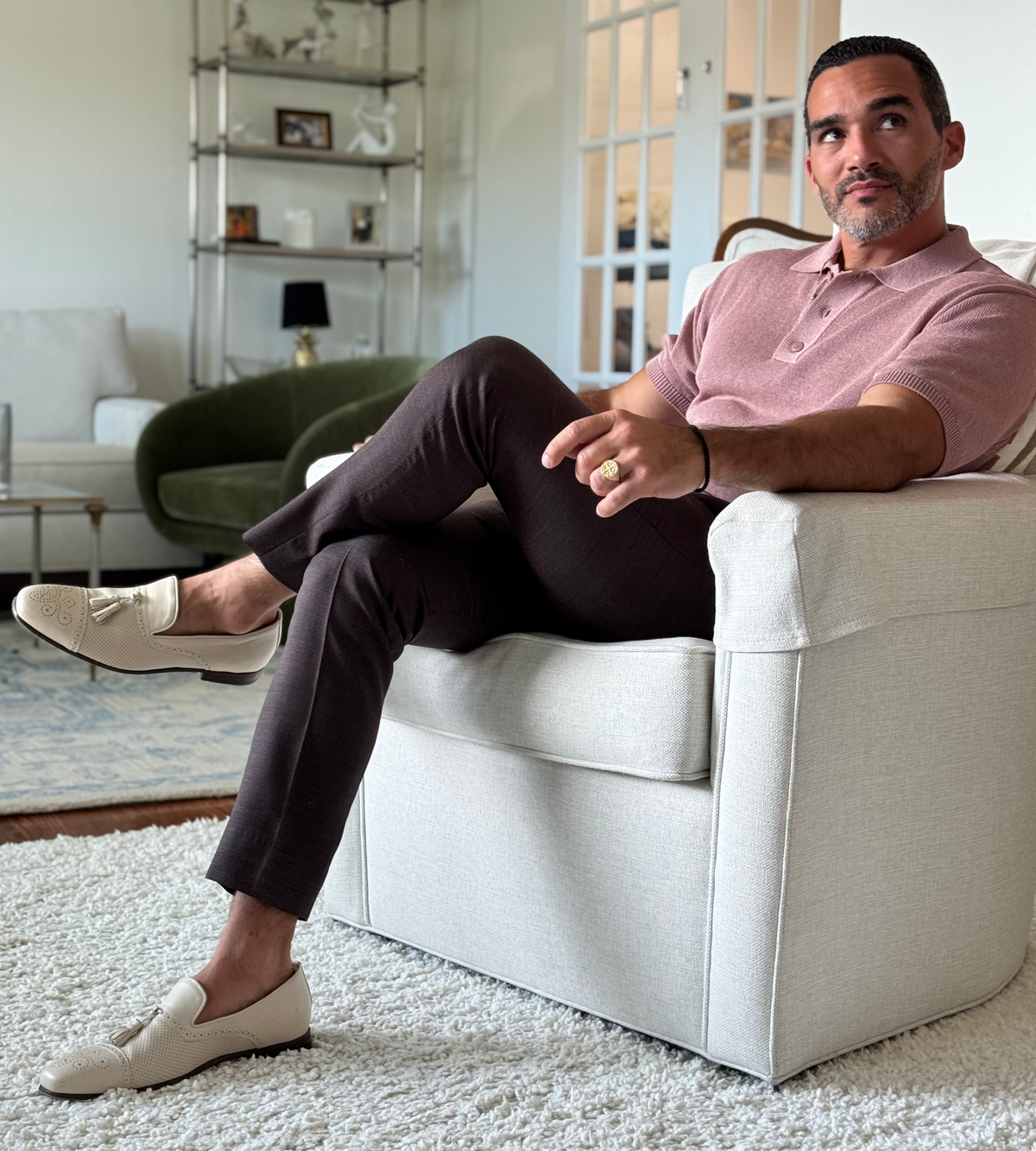 Red Canvas Moccasin Loafer & Black Suede Leather Lining. Leather Sole. Leather Signature Diamond Heel With Mark Chris Monogram. Handmade in Italy. "This loafer was named after my Grandfather, George,...